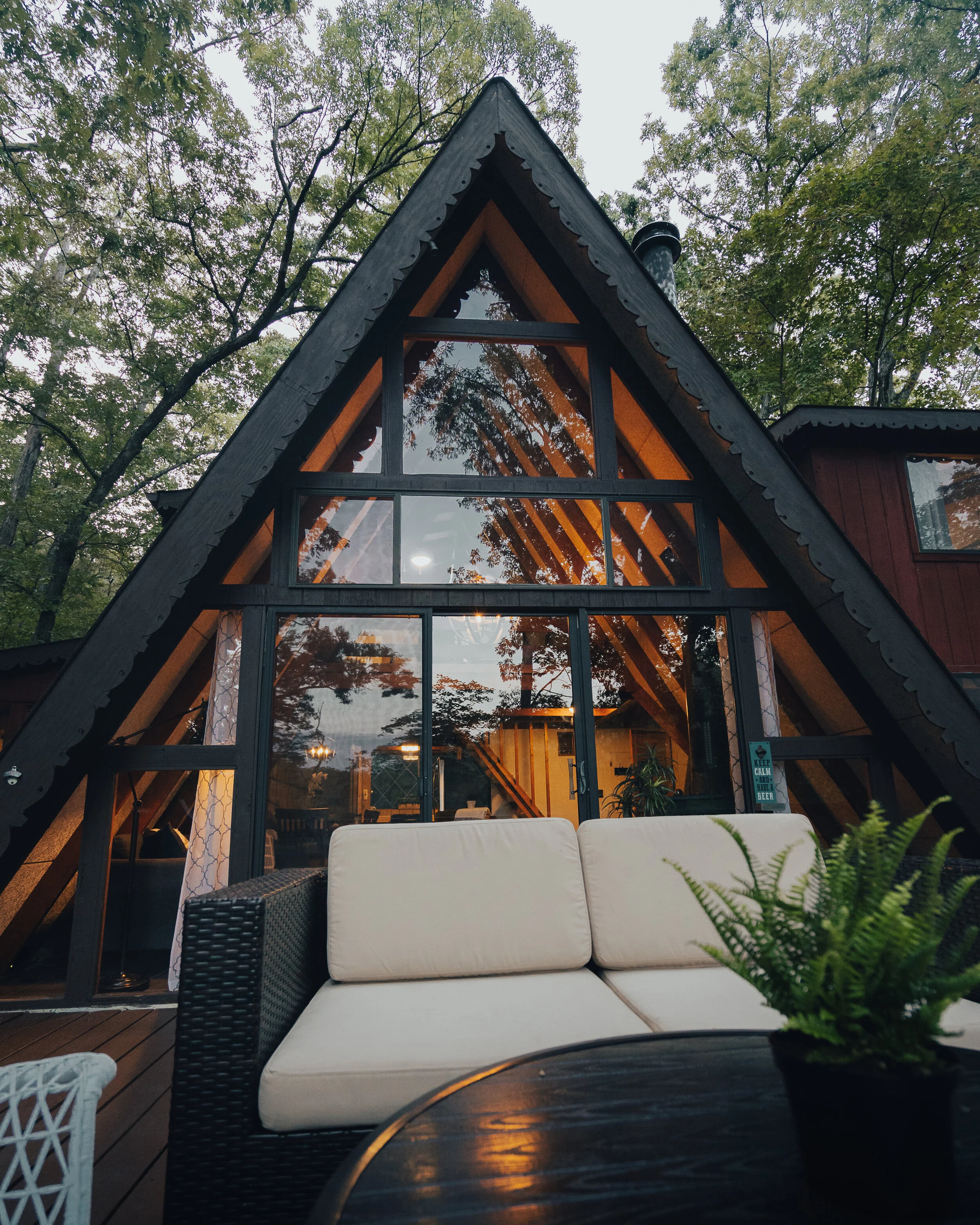 Pura Vida Chalet is a lakeside cabin nestled perfectly into the woods of Innsbrook, MO just about an hour outside of St. Louis.